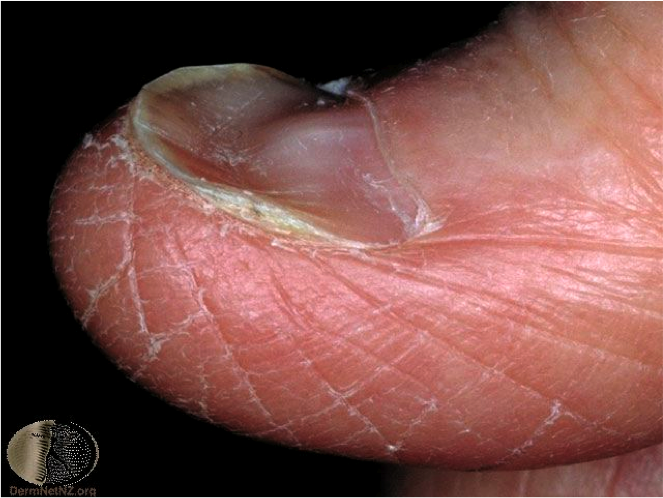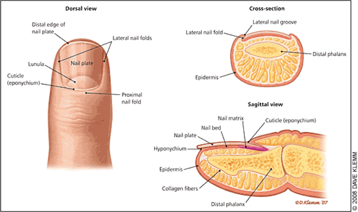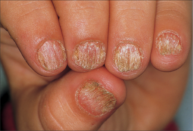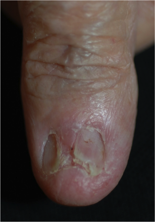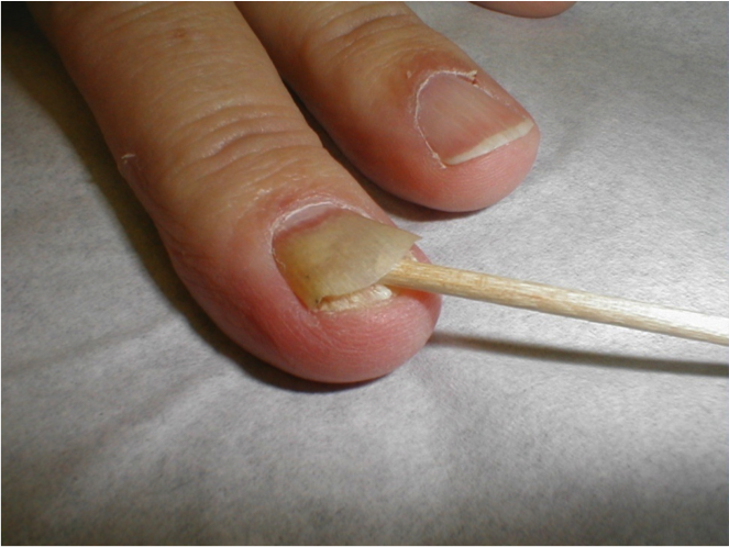 Apparent: disappears with pressure (nail plate normal; abnormal nail bed)