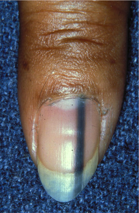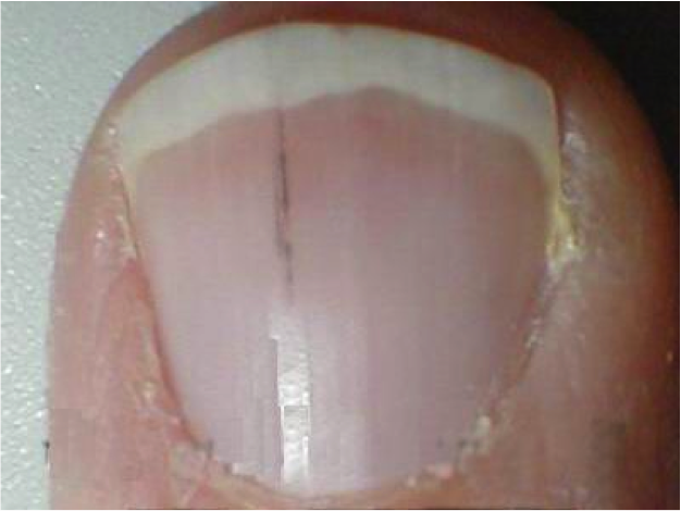 a condition due to damage to longitundianlly oriented nail bed capillaries that is most commonly associated with trauma