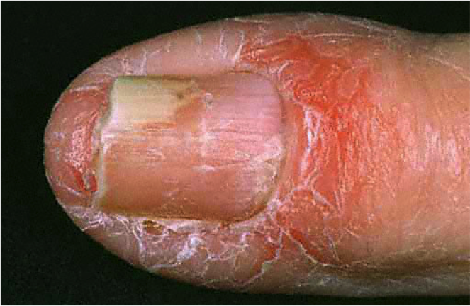 Dorsal pterygium: scarring of the proximal nail fold over the nail plate