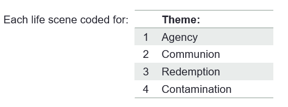 Researchers coded for redemption (how we make sense of challenging events) and contamination life scenes (good events that turn bad).