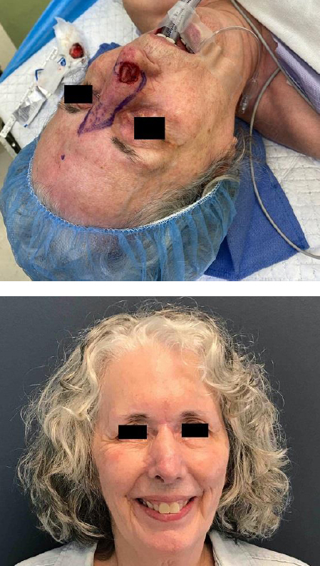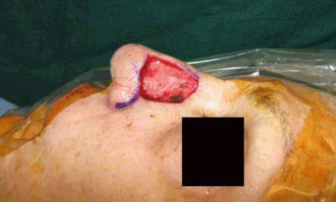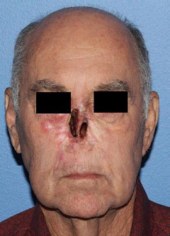 Any local nasal flap will leave the surgeon to deal with unpredictable previously irradiated nasal skin. The outcome can be less reliable because of perfusion and possibly unfavorable tissue pliability and mobility.