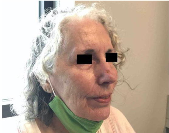 The defect shown could also have been closed with a forehead flap, but this was not listed as an option.