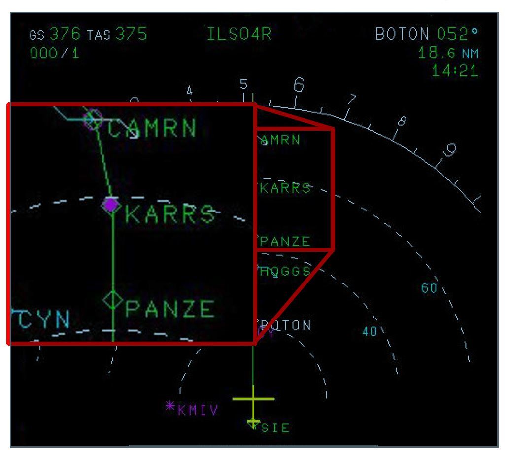 What does the magenta dot at KARRS indicate?