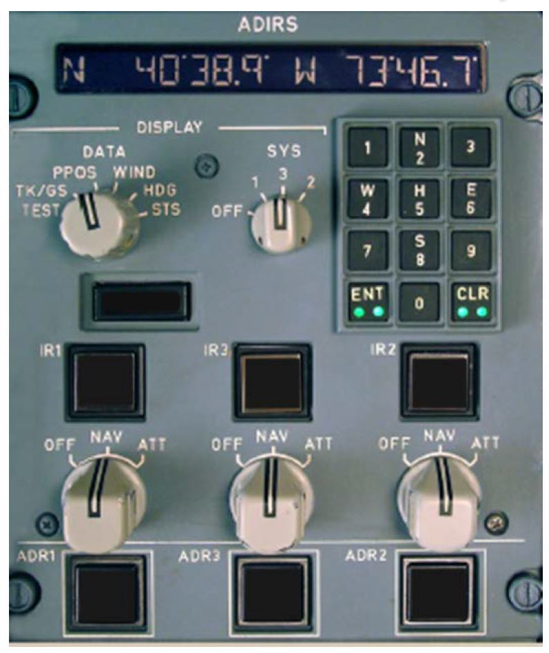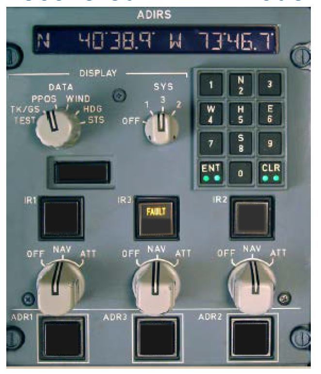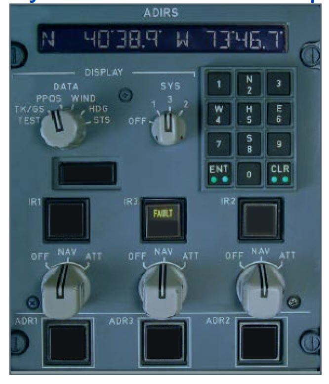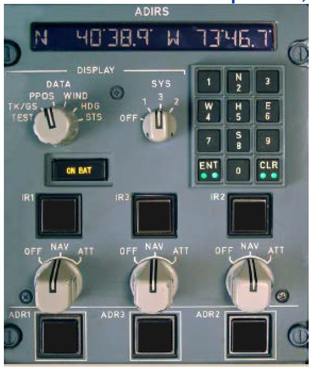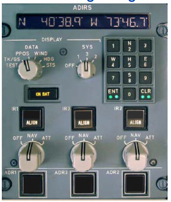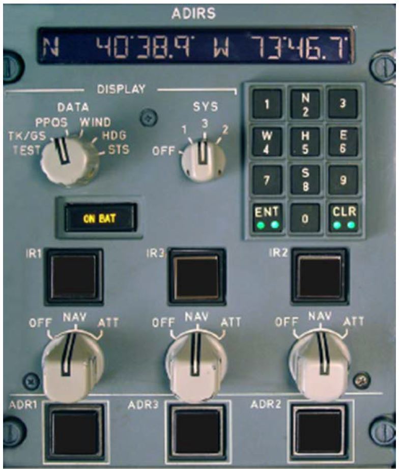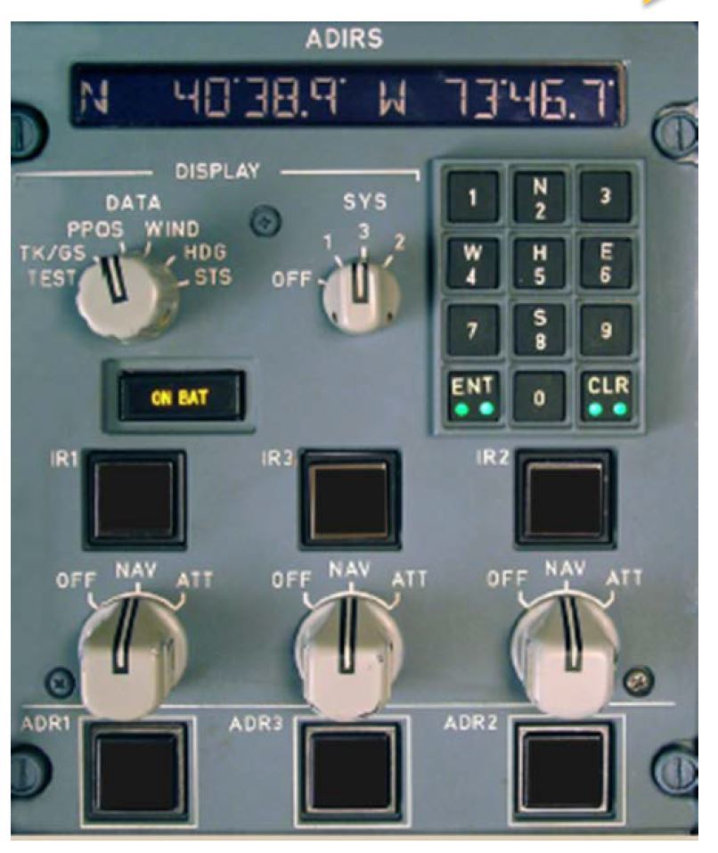 Illuminates amber when one or more IR(s) is supplied only by the aircraft battery, or comes on for a few seconds as a test at the beginning of a full alignment