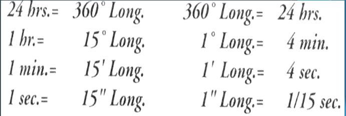 Lines joining the true (geographic) poles of the earth. They are measured from 0° - 180° east and west of the prime meridian in degrees (°) and seconds (‘)
