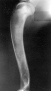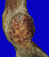 A 10-year-old spayed female cat is being evaluated because of a suspected injury to both hindlimbs. The cat has been drinking and urinating excessively for the past two months. She is walking in a plantigrade stance. What is the most likely cause of this stance?