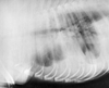 A 4-year-old neutered male cat is in shock two hours after sustaining a small wound in the left flank and a larger wound on the lower right side just caudal to the 13th rib. A projectile injury is suspected. Which of the following conditions is most likely to result from these injuries?