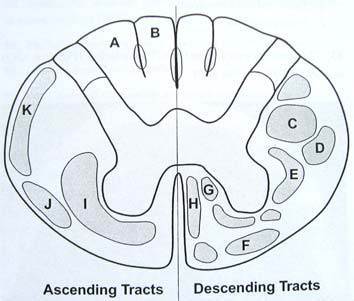 Petunjuk: Jodohkanlah masing-masing saluran spinal cord di bawah ini dengan korelasi klinisnya masing-masing yang paling tepat. Saluran naik pada sisi kiri, saluran turun pada sisi kanan.