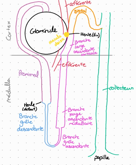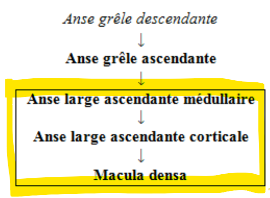 Tubule proximal en a déja réab 50-75%, mais de facon isoosmotique, contrairement à Henle qui établi un gradient de concentration en réab + de sodium que d’H20 (médullaire devient + concentrée que l’urine)