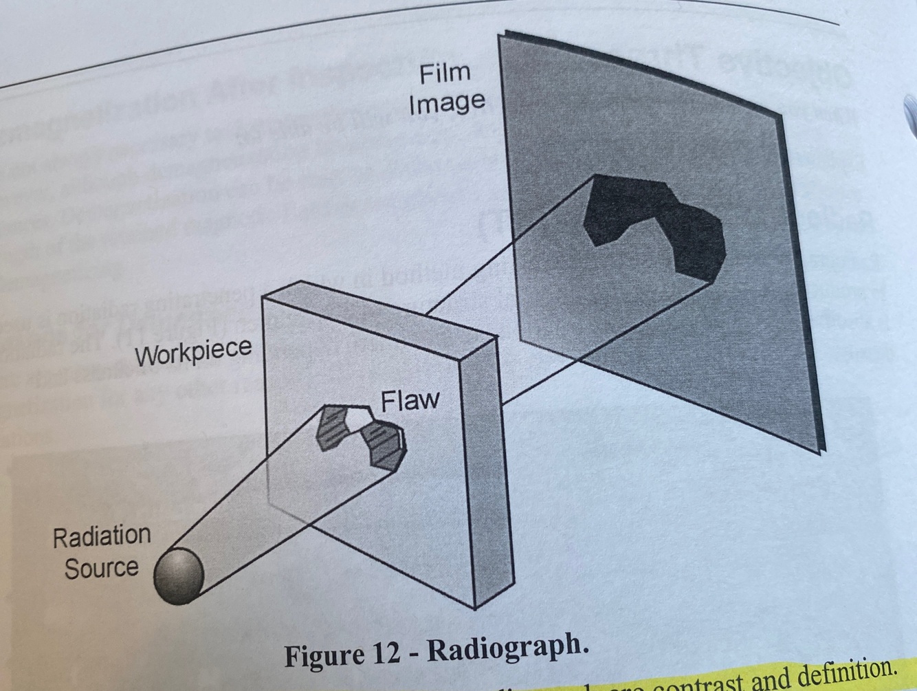 Penetrating radiation is used to produce a film image of the internal structure of a specimen.