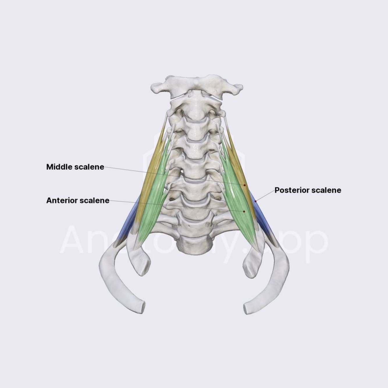 O: Transverse process of cervical vertebrae. Connected to C2-C7