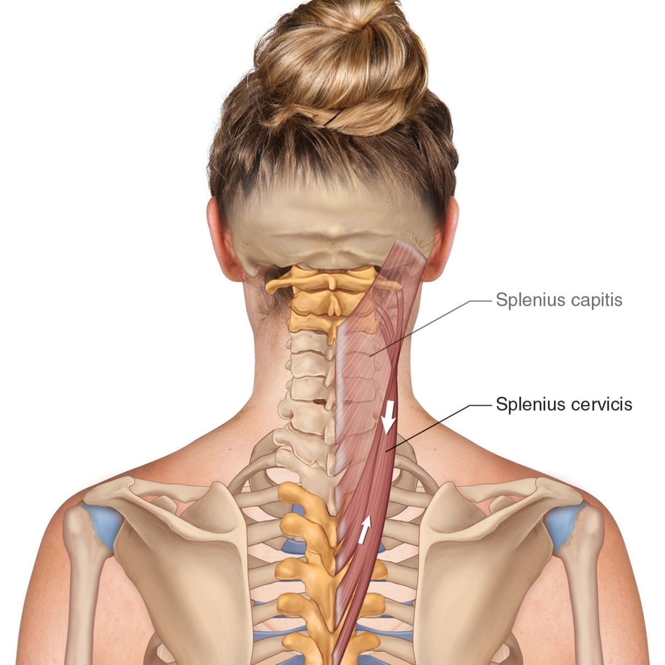 A: Bylateral extension of neck + head working unilaterally, rotation