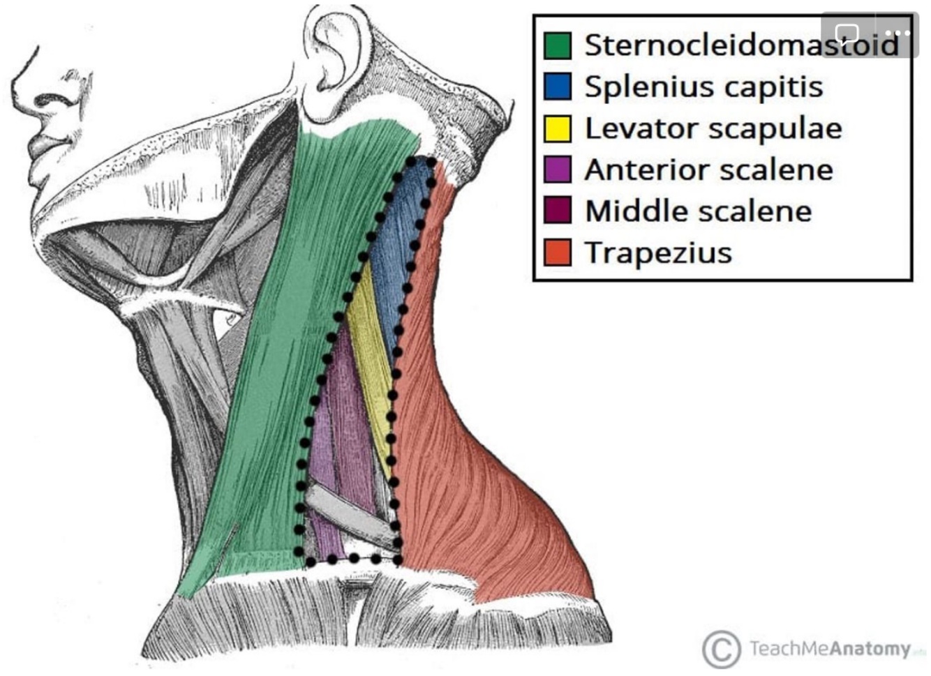 Floor- Splenius capitus, Levator scapulae, The Anterior, Middle and PosteriorScalenes