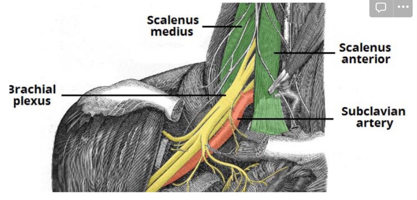 located inferior to the omohyoid. It contains the distal portion of the subclavian artery