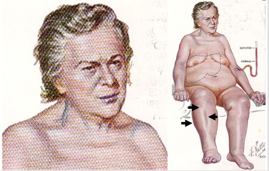 The increase pressure on the veins draining into the heart causes buldging on the EJV.