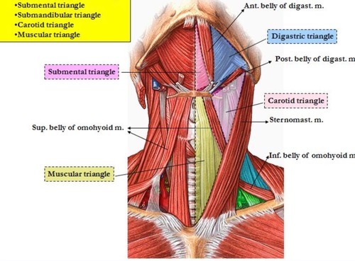 Borders and contents of submental triangle