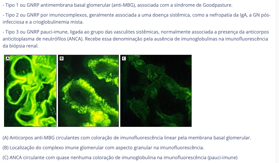 - goodpasture: anticorpo anti membrana basal, FR tabagismo, sd pulmao rim, IF com deposito linear