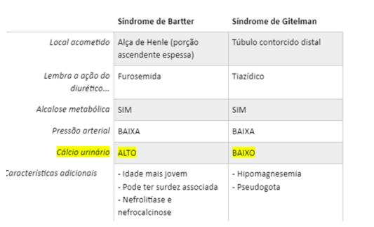 Bartter = furosemida (alça de Henle)»_space; CaU alto (litíase / nefrocalcinose), urina isostenurica