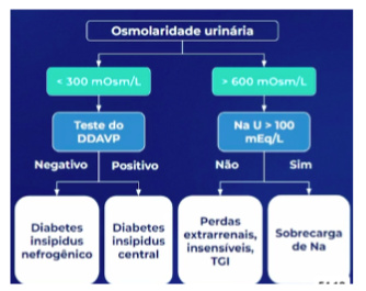 osm urinaria < 300 = teste DDAVP