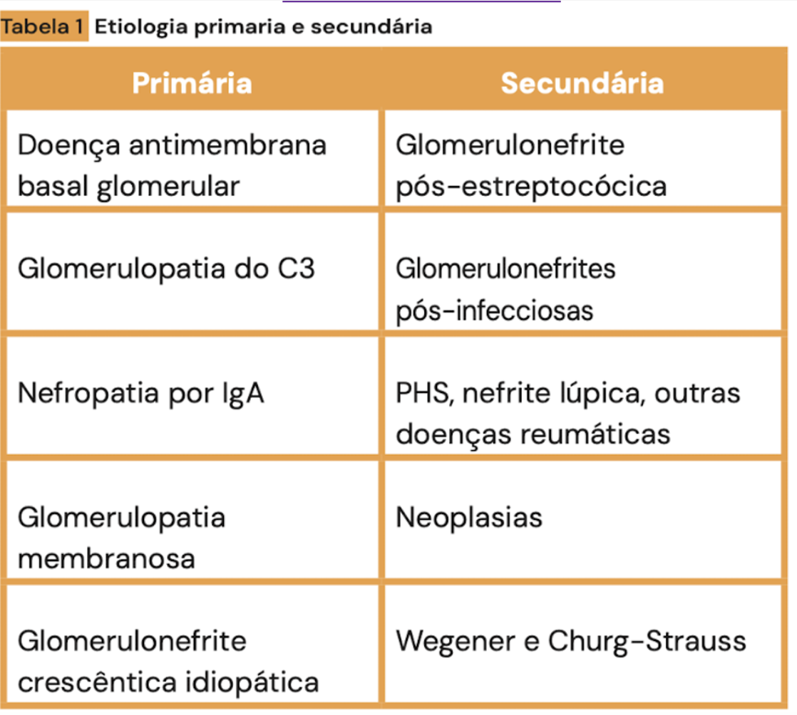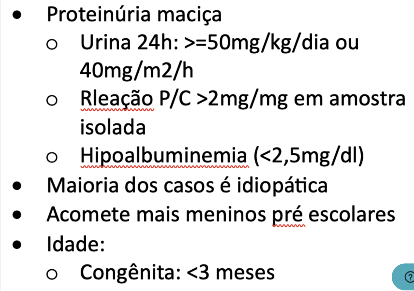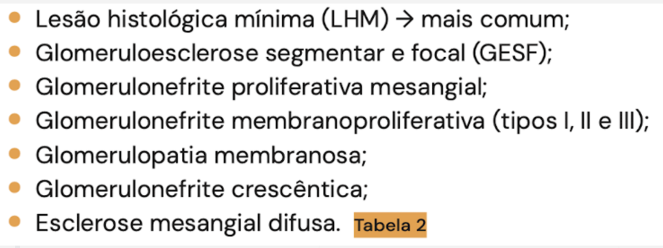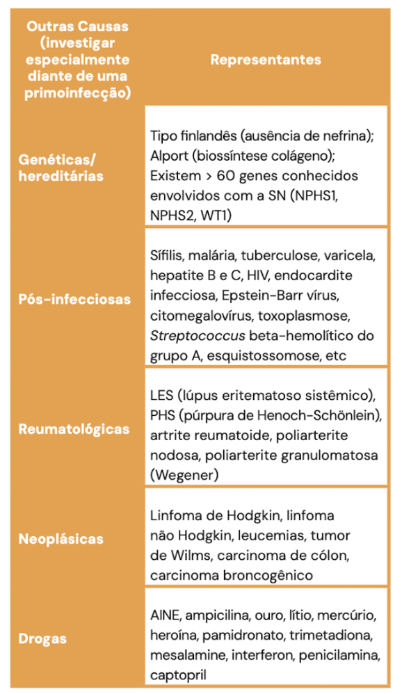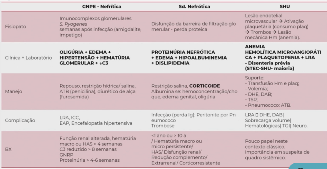Quadro de diferenças: sd nefrítica vs nefrótica vs SHU