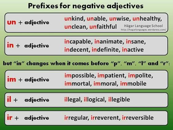 im = u přídavných jmen začínajících na “m” nebo “p”(mortal - immortal, patient - impatient)