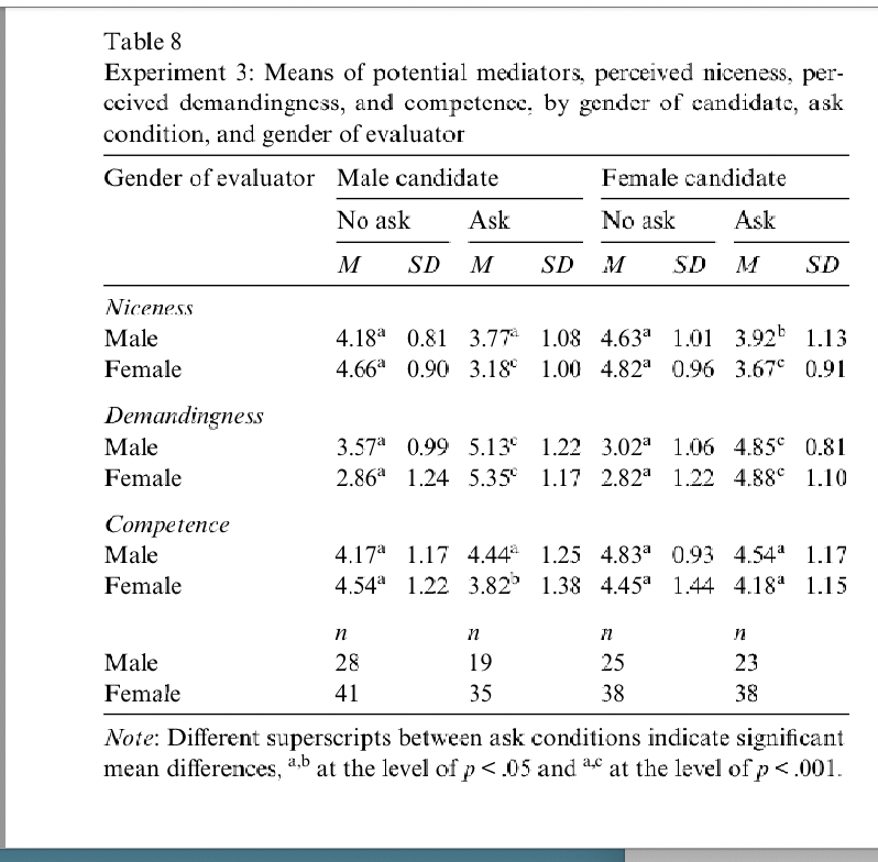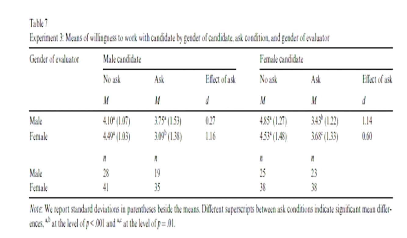 If you have a female candidate and a female evaluator there is a significant difference in asking to negotiate then not asking to negotiate, however this is smaller than a female evaluator looking at a male candidate.