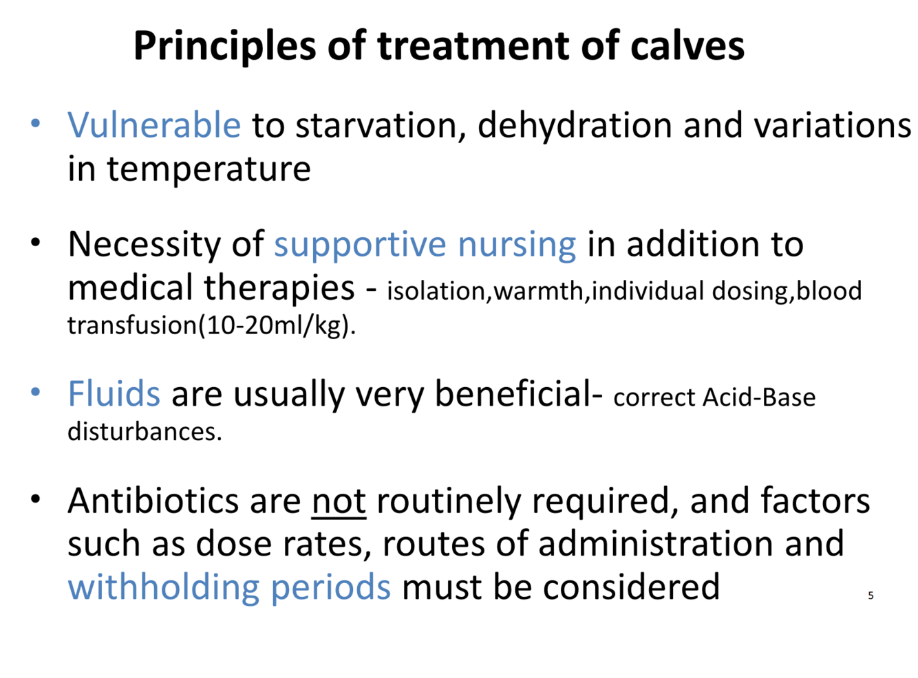 Principles of treatment of calves