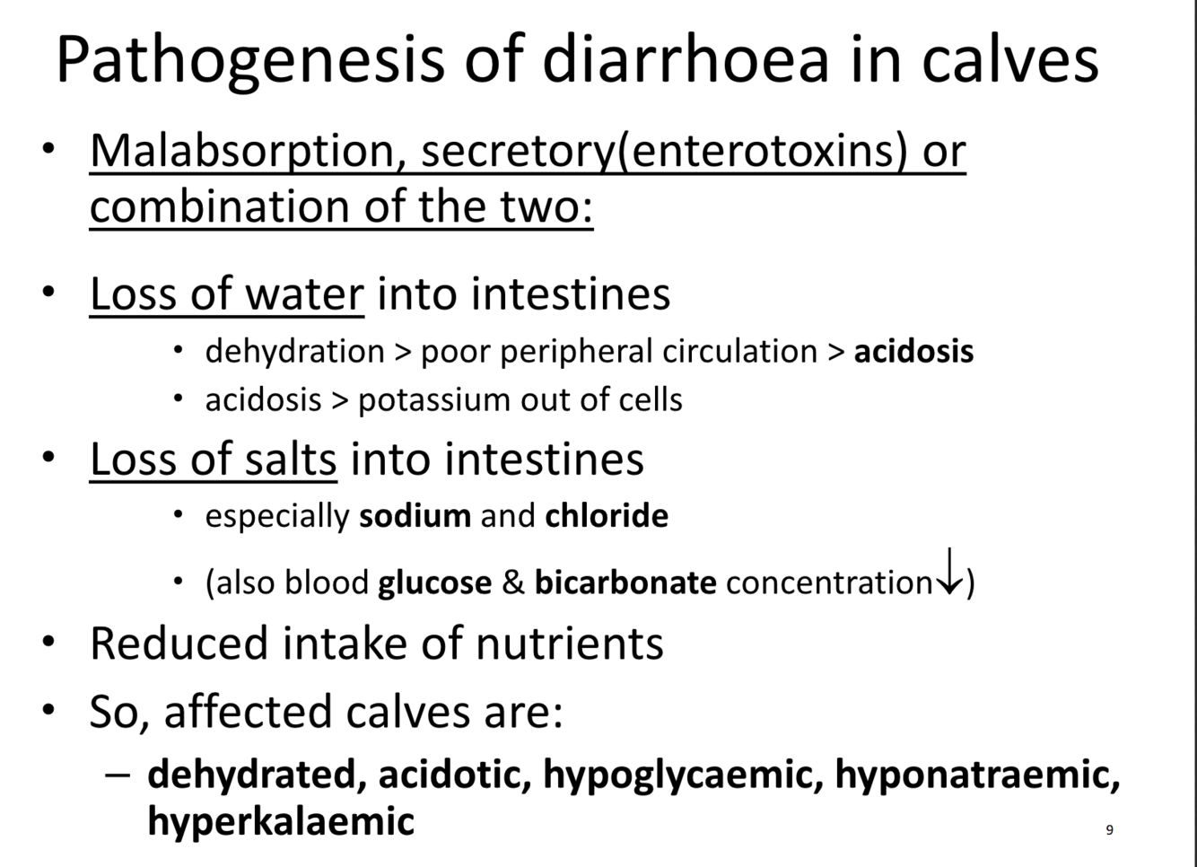 Pathogenesis of diarrhoea in calves