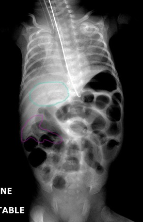 What is the diagnostic test for necrotising enterocolitis?