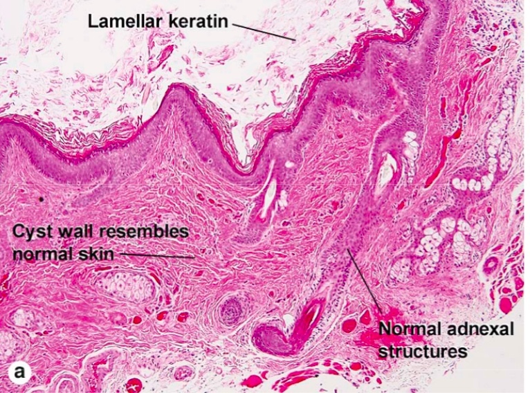 Normal Adnexal Structures in cyst lining