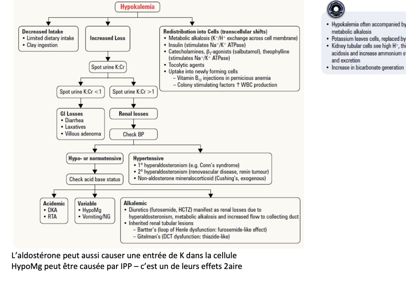 o hypoK, malnutrition, cirrhose, alcoolisme, polydipsie psychogénique privé d’eau