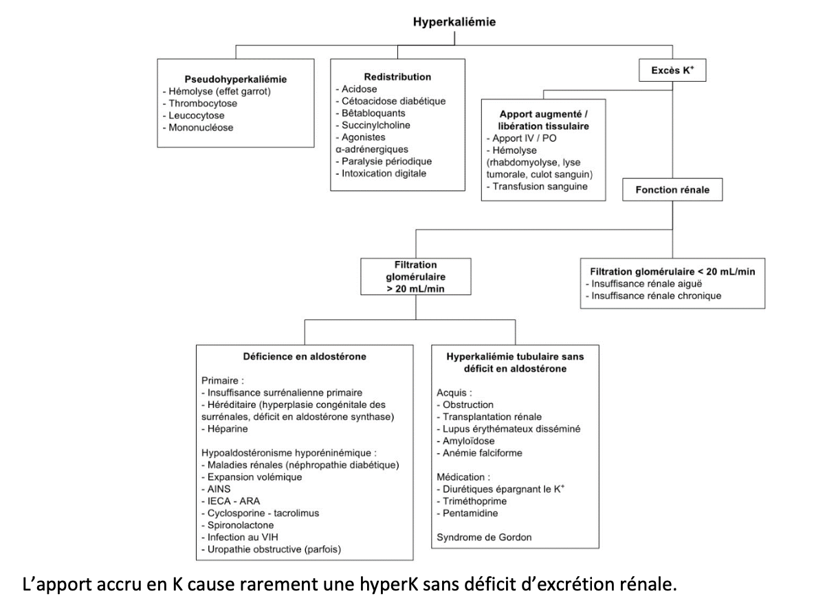Éliminer pseudohyperK : avec hémolyse (effet garrot), ↑leucocytes >100, ↑plq >1000