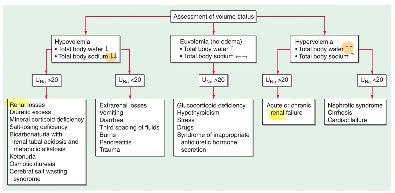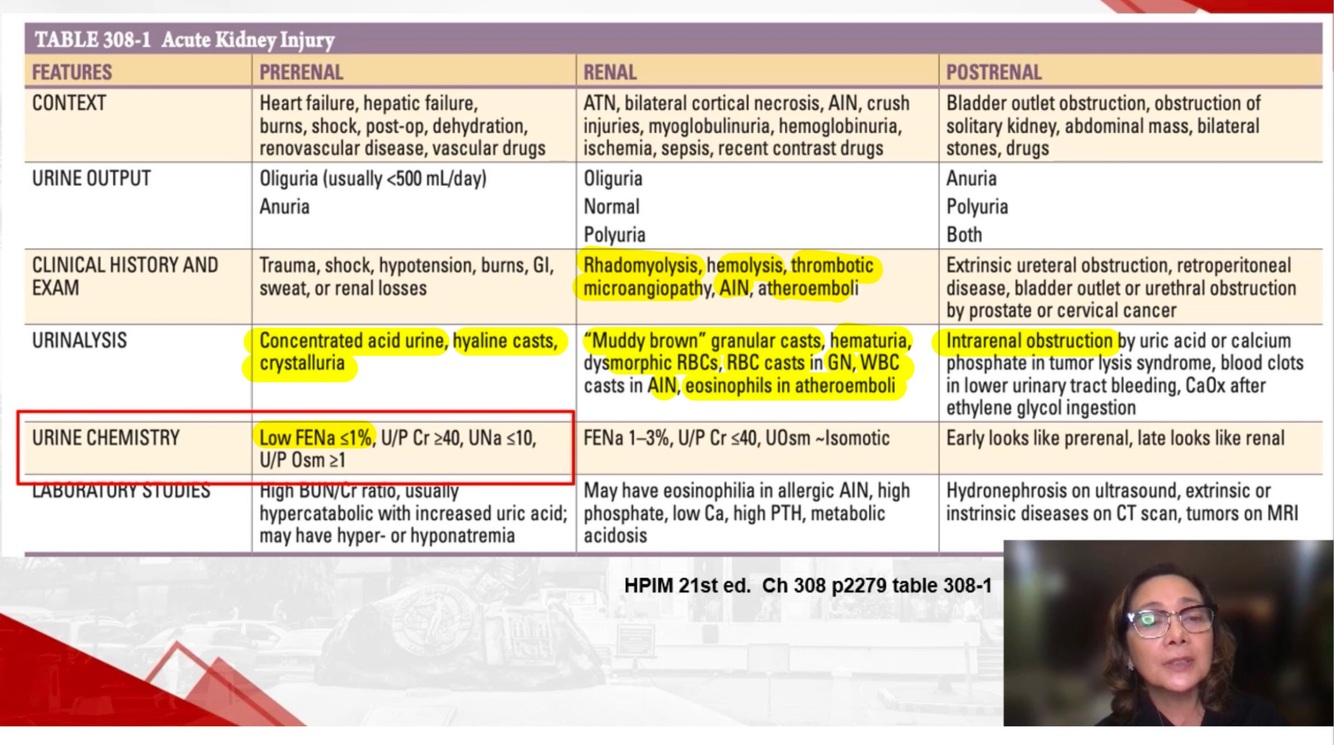 Low FENa ≤1%, U/P Cr ≥40, UNa ≤10, U/P Osm ≥1
