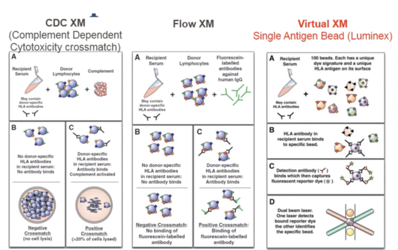 Complement Dependent Cytotoxicity (CDC) - Highest risk if Positive (holds most weight on decision!)