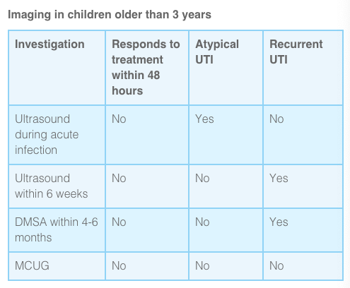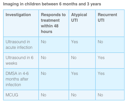 What is the role of imaging for UTI in childreen between 6 months and 3 years?