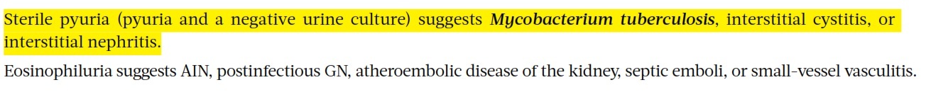 WBC or Eosinophils in urine