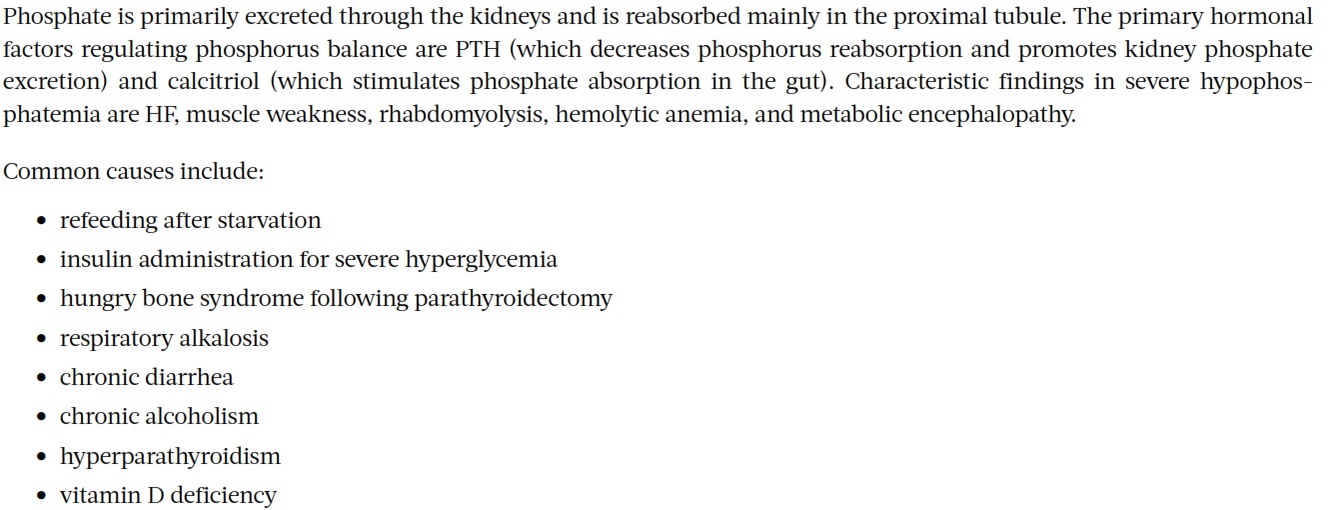 Phosphate regulation, symptoms of hypophosphatemia