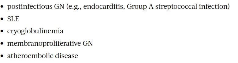 Causes of glomerular disease associated with low complements