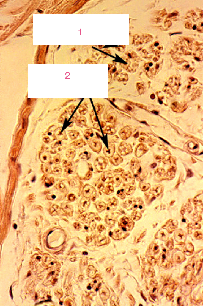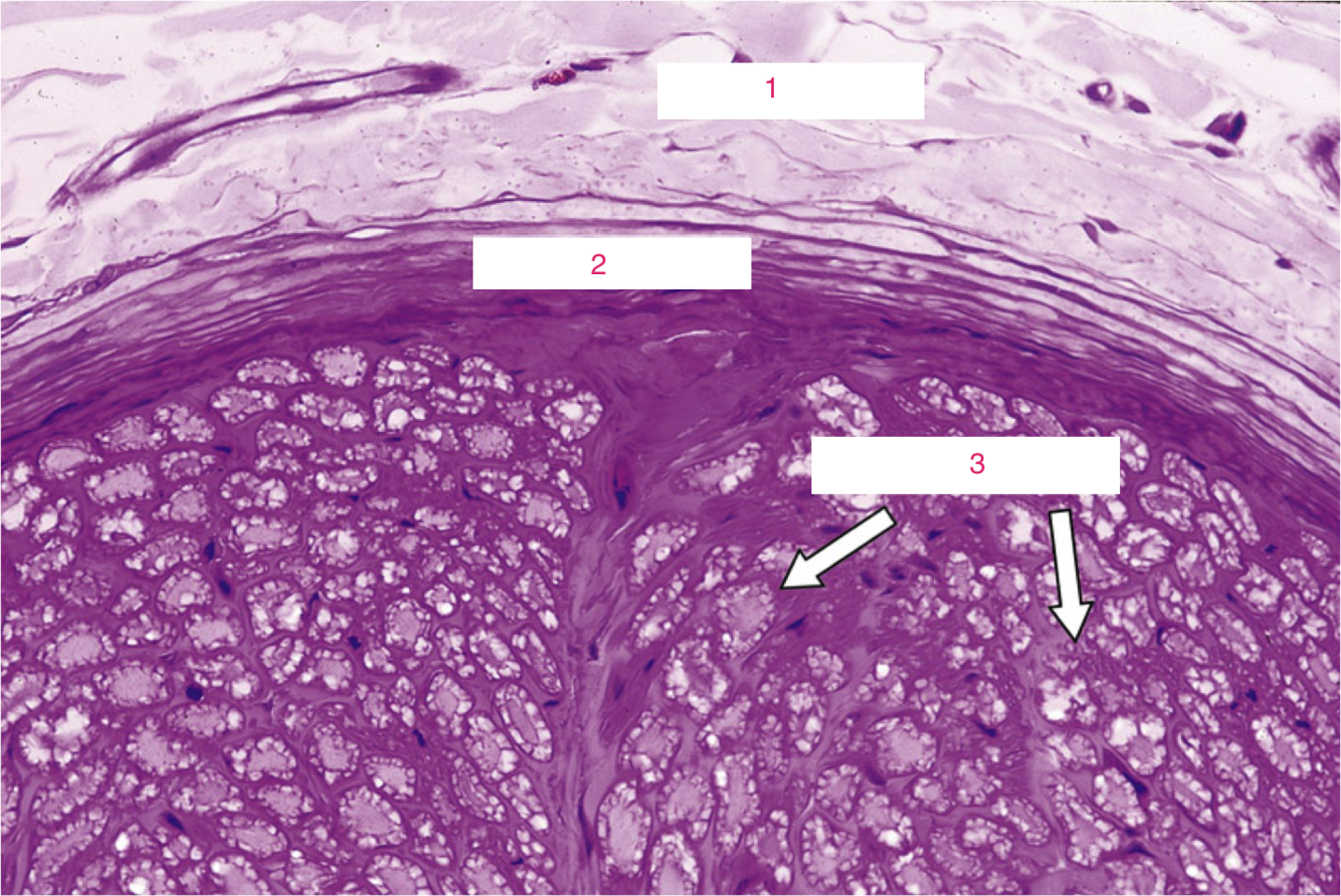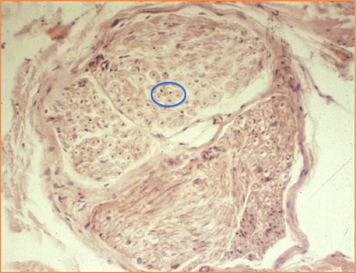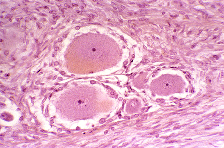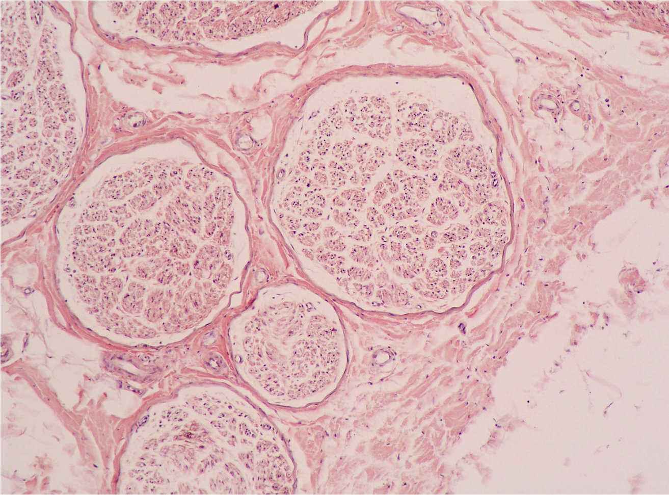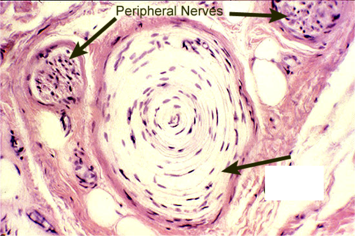 Pacinian Corpuscles: Large (1 mm) encapsulated ending in dermis/hypodermis of skin from flattened layers of concentric Schwann cells