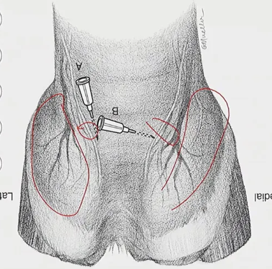 for low four point, it is better to inject proximally or medial/laterally to avoid injecting the tendon sheaths