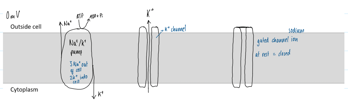 myelin sheath = insulated part of membrane - no ion channels, no Na+/K+ movement across membrane
