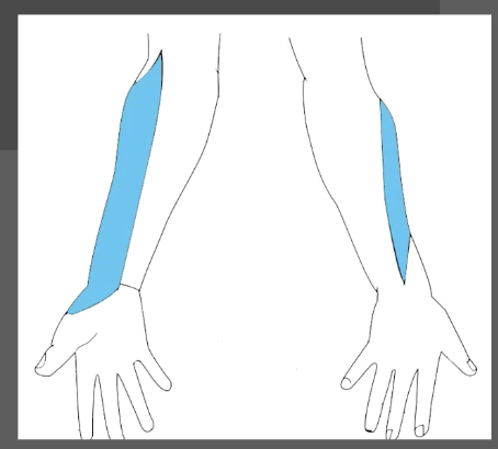 Blocks the sensory down low to the lateral cutaneous nerve of the FOREARM.