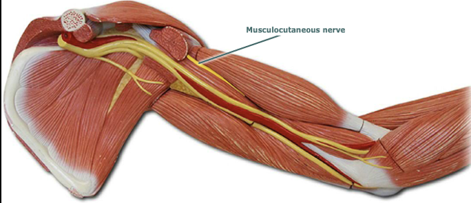 spinal roots, sensory and motor functions for the musculocutaneous nerve