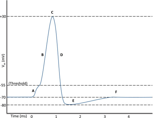 Sodium rapidly diffuses into the axon, down an electrochemical gradient.