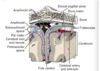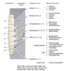 of spinal nerves. Also, dura mater merges with periosteum. In the lumbosacral region, fibrous bands extend from the spinal cord dura mater to the floor of the vertebral canal. The bands often accompany spinal roots and attach near intervertebral