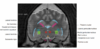 G, H- midbrain including tectum, tegmentum, cerebral peduncles