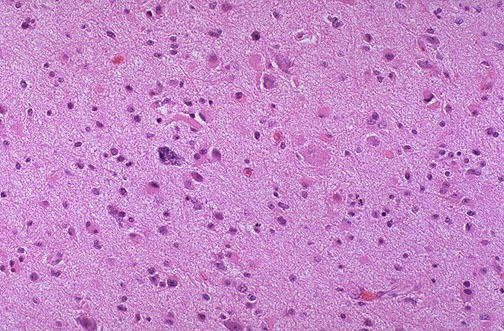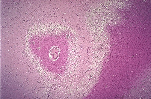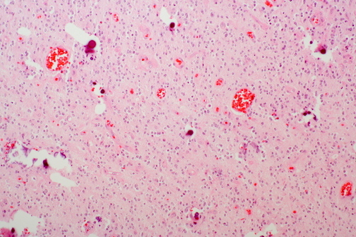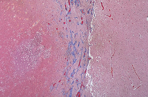 Subacute infarct - foamy macrophages