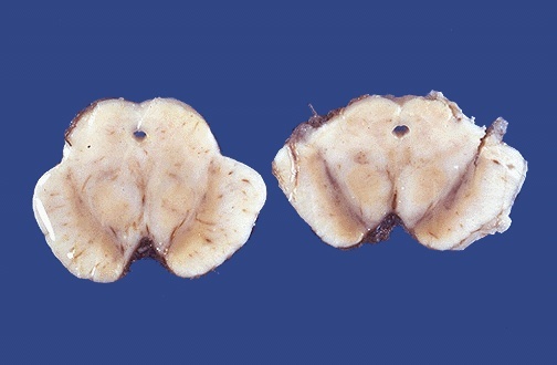 Vasogenic edema - pale areas