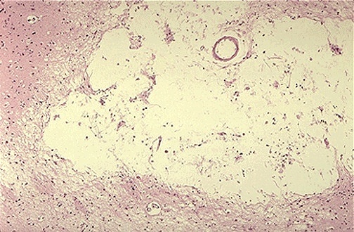 Lacunar infarct - cystic space due to liquefactive necrosis