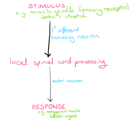 tap patella + knee kicks out - useful diagnostically to see if sensory + motor + muscle all working